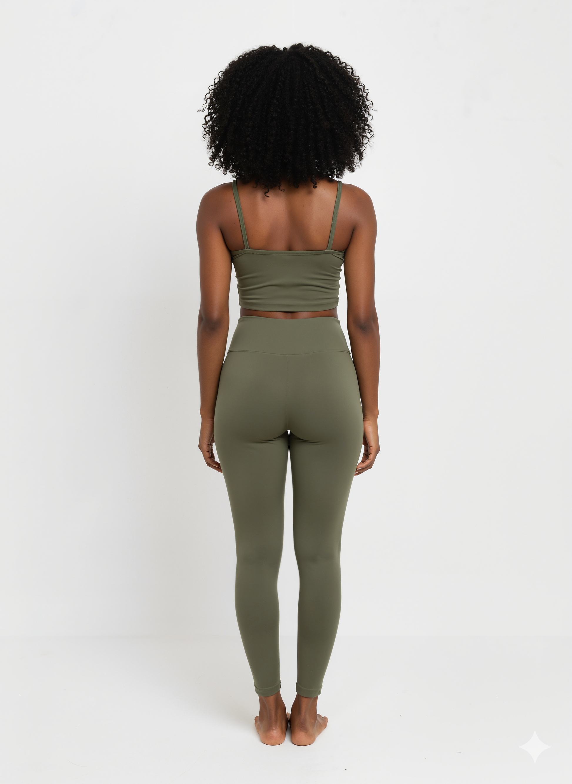 Take on your day with confidence in the Olive Flow Active Set — a sleek, sculpting co-ord designed for movement and style. The fitted crop top with slim straps pairs seamlessly with high-rise leggings, offering a second-skin feel that stays put whether you’re powering through a workout or running errands.